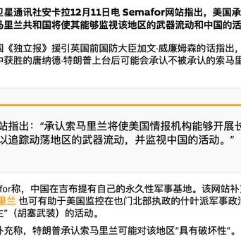 果然,川普对付我们的招数远不止关税战这一个。据英国前国防大臣加文·威廉姆森爆料,川普决心在上台后宣布美国承认所谓的“索马里兰共和国”,为的是让美国情报机构在索马里获得长期据点,对邻近的解放军唯一海外基地吉布提保障基地进行持续监视,同时也把在亚丁湾护航的解放军舰艇编队纳入美方监控网络。